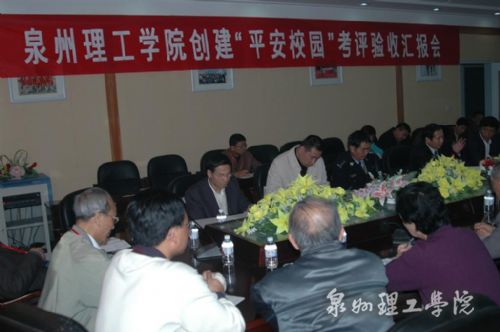 汇报会现场 检查食堂设施 12月18日下午,以泉州市教育局副局长孙银聪为组长的市“平安校园”考评验收组一行7人对我校“平安校园”建设工作进行考察评...