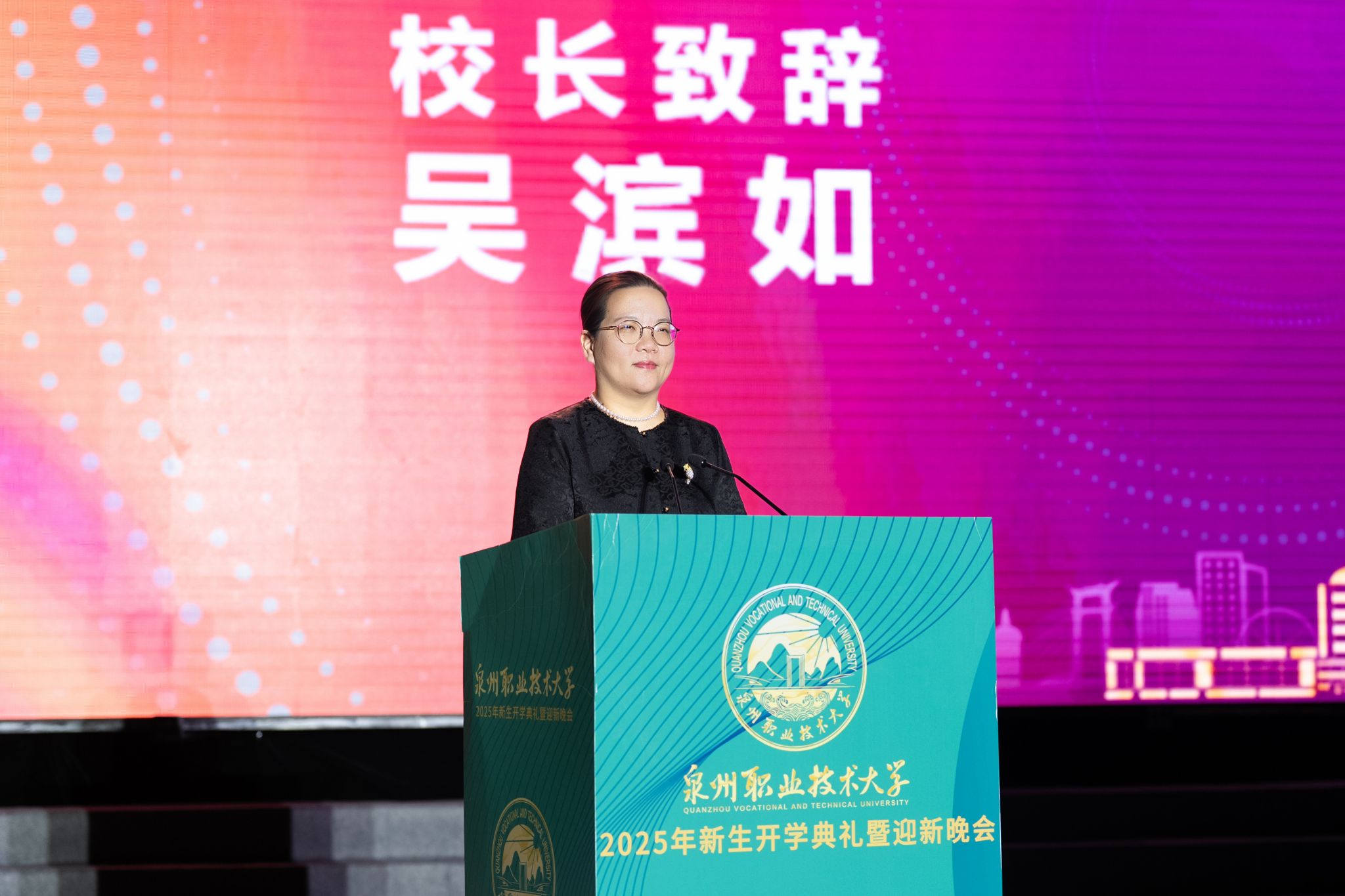 女士们、先生们,尊敬的各位来宾,亲爱的老师、同学们:大家晚上好!秋风乍起,秋意渐浓。这个时候天空还来了一阵小雨,在闽南,每当吉庆的日子,下雨被视为一种吉瑞,是一个祥兆。今天晚上我们这座年轻的校园因大家的到来而焕发着勃勃生机。首先,我谨代表学校,诚挚地欢迎2025级的全体新同学加入泉州职业技术大学大家庭,欢迎远道而来参加国际青年交流营的马来西亚、菲律宾、泰国的师生们,更欢迎我们海内外产业伙伴们的到来...