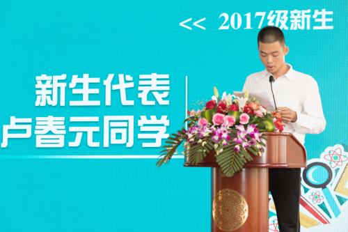 工学院16级油气储运技术专业,陈雅俐同学作为老生代表发言,分享就读泉理工一年来的真切感受和新生们共勉。建筑系17级建筑工程技术专业卢春元同学作为新生代表发言,他代表全体新同学,郑重承诺一定严守校纪校规,勤奋刻苦学习,讲究文明礼貌,注重团结协作,做一名品学兼优的新时代大学生!