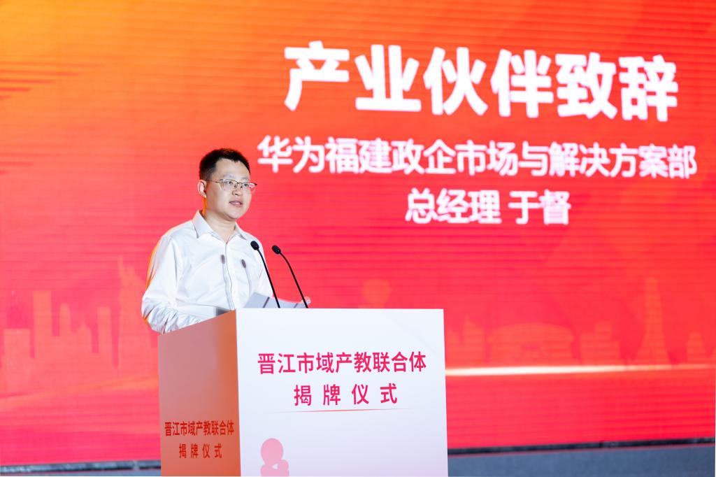 于督在致辞中强调,泉州职业技术大学是华为公司非常重要的教育伙伴。泉大与华为在2019年合作建立了华为ICT学院,共同培养人工智能、大数据方向的人才。接下来在此基础上,华为将与泉大共建联合创新产业学院,致力于培养昇腾人工智能计算与鸿蒙移动应用开发人才,发展国产化技术人才培养生态,全力支持晋江市域产教联合体建设,服务晋江产业高质量发展。