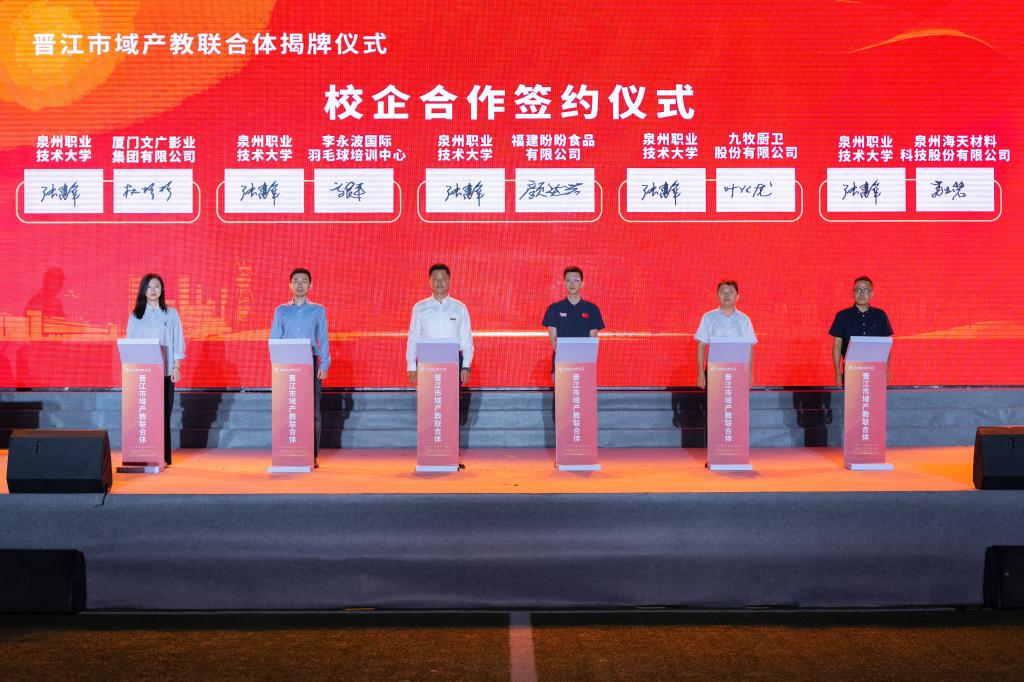 10月13日,晋江市域产教联合体揭牌仪式在泉州职业技术大学隆重举行。在教育部、福建省教育厅及泉州市的大力支持下,晋江市汇聚园区、院校、行业企业、科研院所等优质资源,全力争创兼具人才培养、创新创业、促进产业经济高质量发展功能的晋江市域产教联合体,是第一批28家国家级市域产教联合体创建单位,是福建唯一,也是全国县域唯一、民办唯一。这是晋江职业教育和产业高质量发展进程中的一件大事,是创新发展“晋江经验”的一重大举措。(点击了解晋江市域产教联合体)