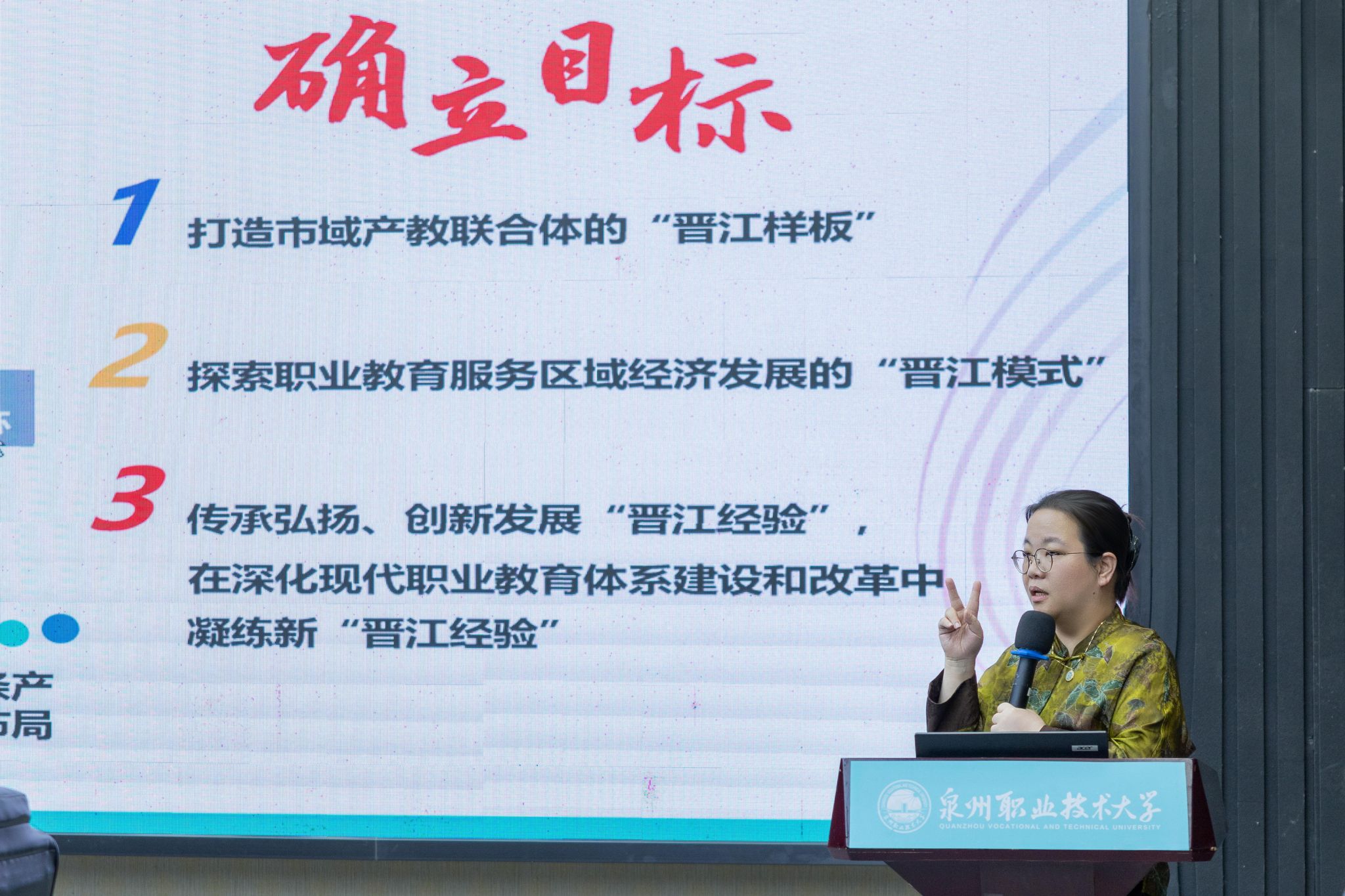 10月24日,泉州市人民政府副市长姚飞一行到泉州职业技术大学调研学校国际化办学。泉州职业技术大学校长吴滨如、党委副书记/副校长蔡金佩、副校长林文艺、校长助理/教务处处长苏康敏等陪同调研。
