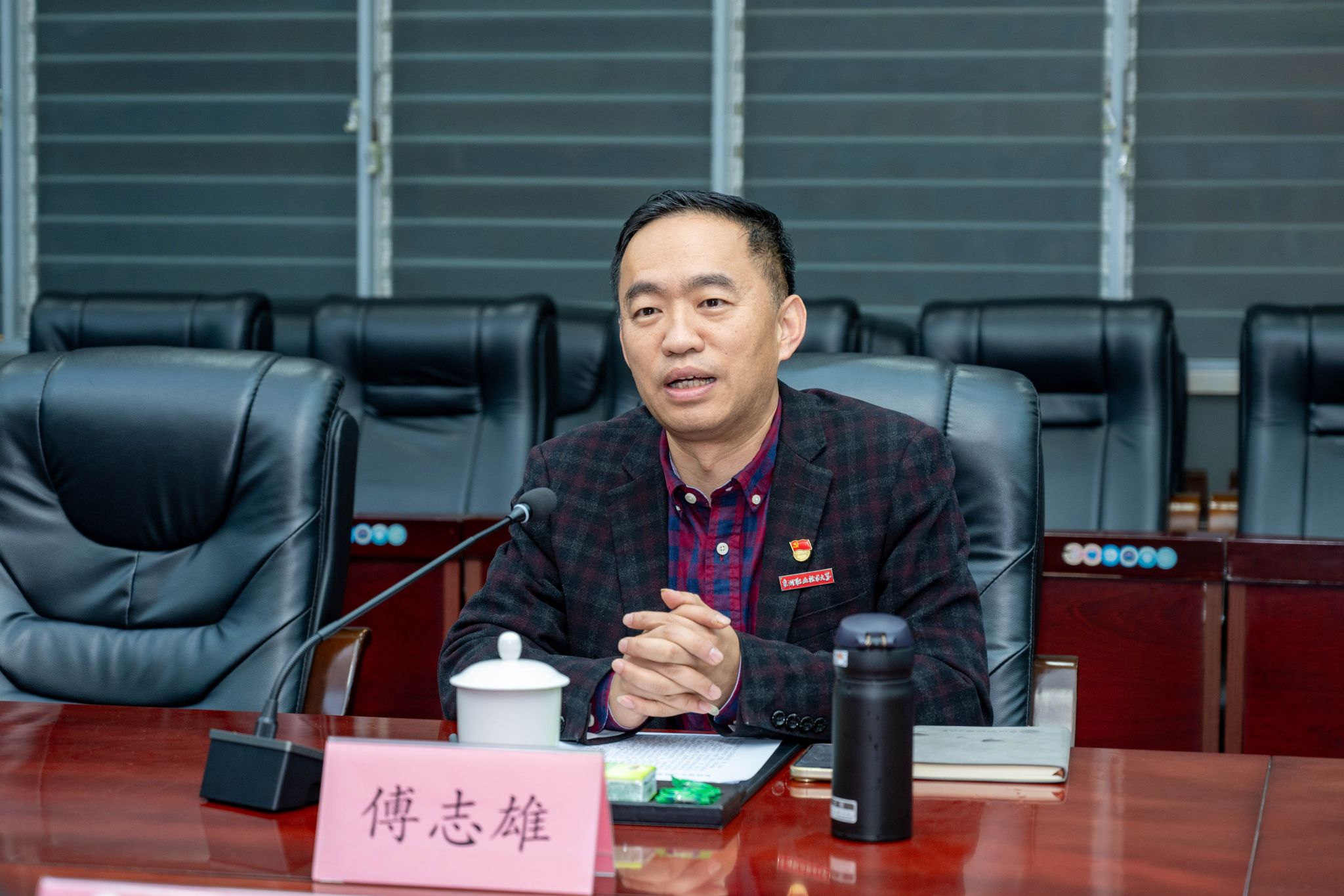 傅志雄代表学校对调研组莅校参观指导表示感谢。他指出,学校始终坚持职业教育类型定位,深化产教融合、校企合作,致力于为学子搭建成长成才的坚实平台。他强调,此次调研是对学校办学成果和育人成效的一次重要检阅,学校将以此为契机,持续深化教育教学改革,引导广大学生将个人理想融入国家发展大局,以坚持为舟,以技能为桨,在新时代的浪潮中书写不负时代的青春篇章。