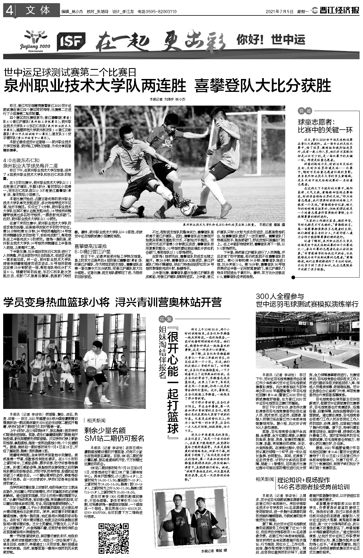 本报记者走进世中运场馆——泉州职业技术大学足球场、泉州轻工学院足球场,为你分享两场精彩赛事。