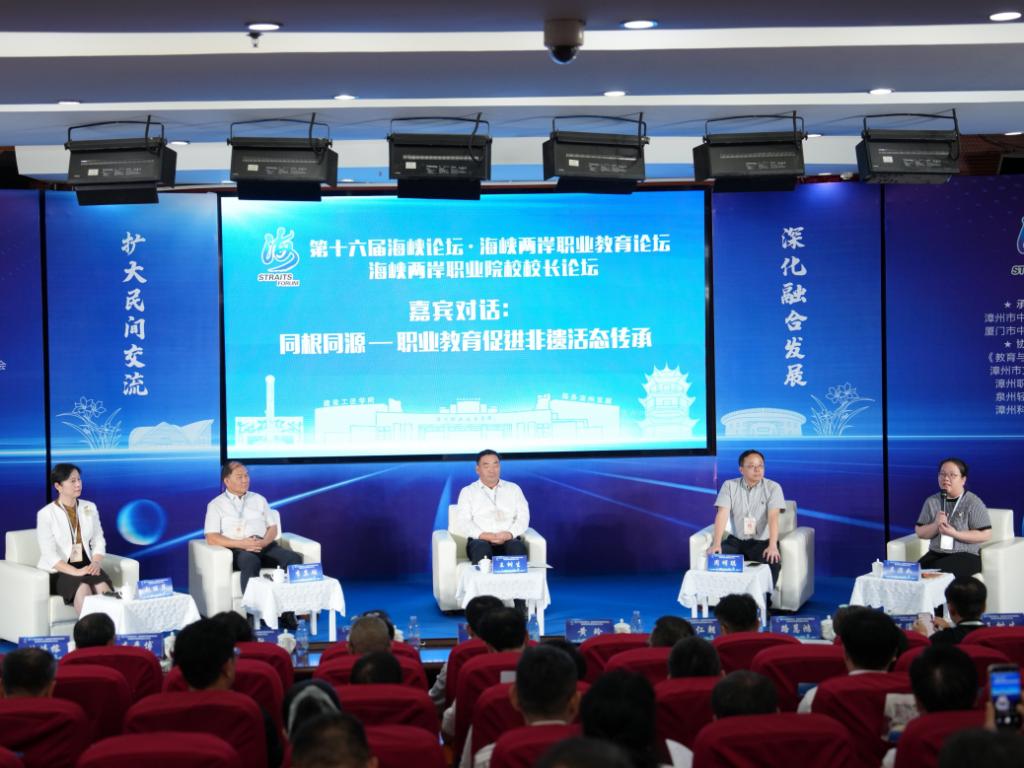 18日下午,海峡两岸职业教育论坛系列活动之一的“海峡两岸职业院校校长论坛”在漳州职业技术学院举办,来自泉州职业技术大学、南方科技大学、集美工业学校、漳州科技职业学院等两岸院校和机构代表围绕“同根同源——职业教育促进非遗活态传承”进行了对话和研讨,并就未来合作进行对接。