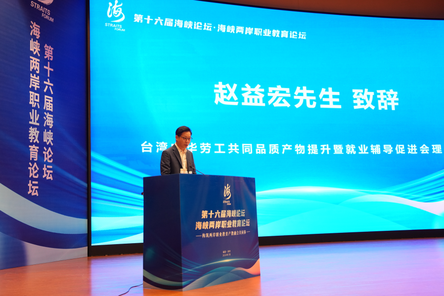 赵益宏在致辞中提到,台湾中华劳工共同品质产物提升暨就业辅导促进会与中华职业教育社的目标宗旨相同,希望本次论坛能够与两岸教育同仁共同探讨如何推动两岸职业教育交流合作、融合融通,帮助青年学子自我提升,全面发展。