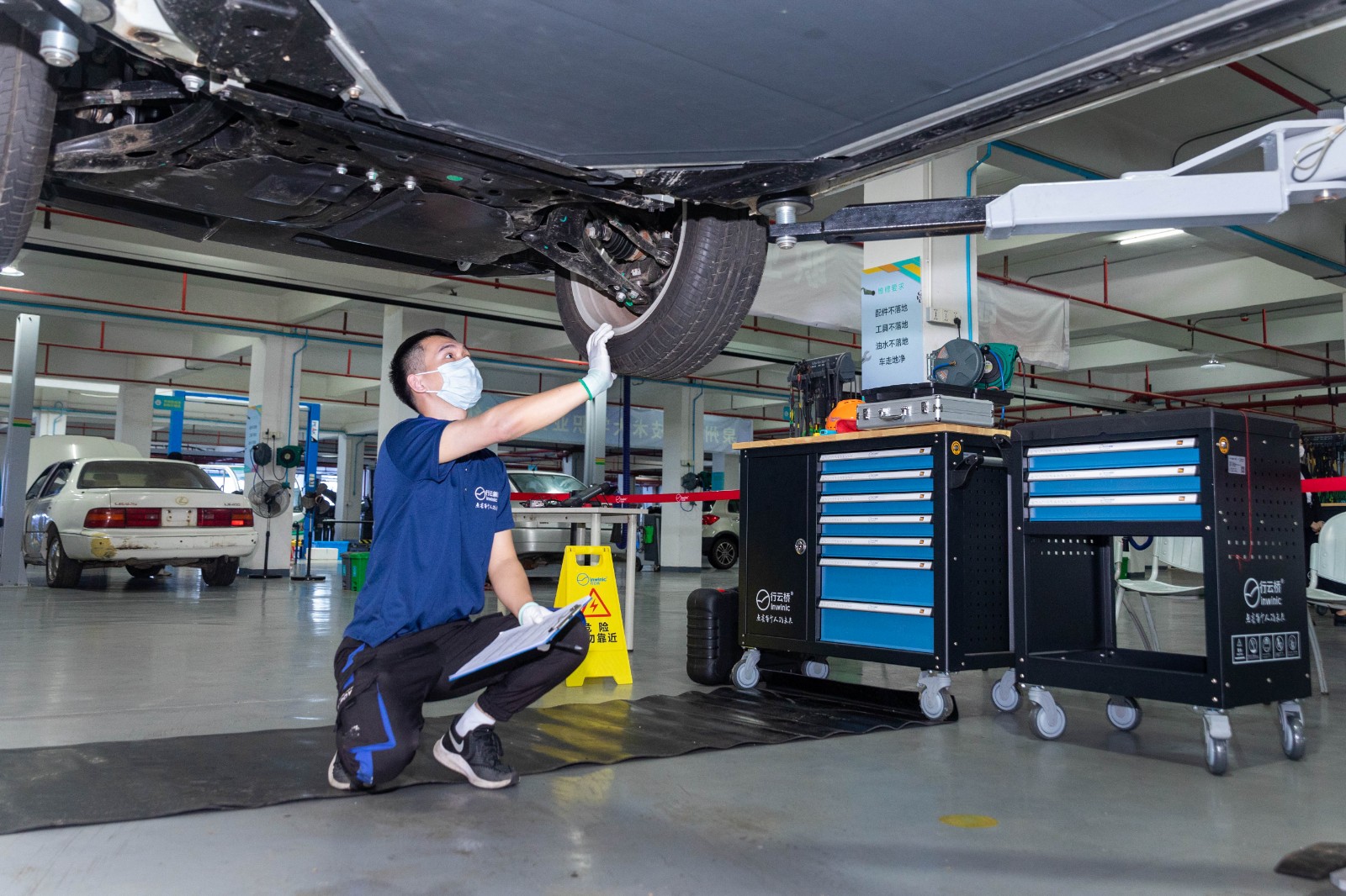 除了校级层面的活动外,我院也于5月12日-13日携手泉州市汽车产业工人技能培训基地、泉州市汽车后市场服务公共实训基地、泉大校工会、东风日产泉州汇京银河专营店、行云新能源汽车学院在汽车工程中心开展为在校教职工爱车进行免费检查,为他们的爱车保驾护航。参加本次活的有中营汽车学院赖景湖老师、黄绍金老师、陈辉老师、张进财老师,行云新能源汽车学院王海斌、邱瑞、吴振良以及东风日产泉州汇京银河专营店市场经理陈建华和企业的维修技师等。中营汽车学院汽车服务工程专业、新能源汽车专业部分学生在现场进行了观摩学习。通过职教周活动观摩学习,使学生贴近实际工作岗位,感受技能服务工作,创造价值的意义。“工作人员认真的工作态度、精湛的技艺,通过检查排除安全隐患,给车主带来安全,我想这就是技能让生活更美好。”2021级汽车服务工程技术专业2班的雷金墩同学如是说。