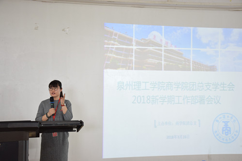 3月16日中午,泉州理工学院商学院团总支学生会在238会议室召开了2018新学期工作部署会议。此次会议是商学院学生会新学期首次大会,商学院团总支书记罗永珍老师、商学院学生会指导老师方媛媛老师、商学院学生会指导老师张明娟老师与商学院学生会的全体成员。