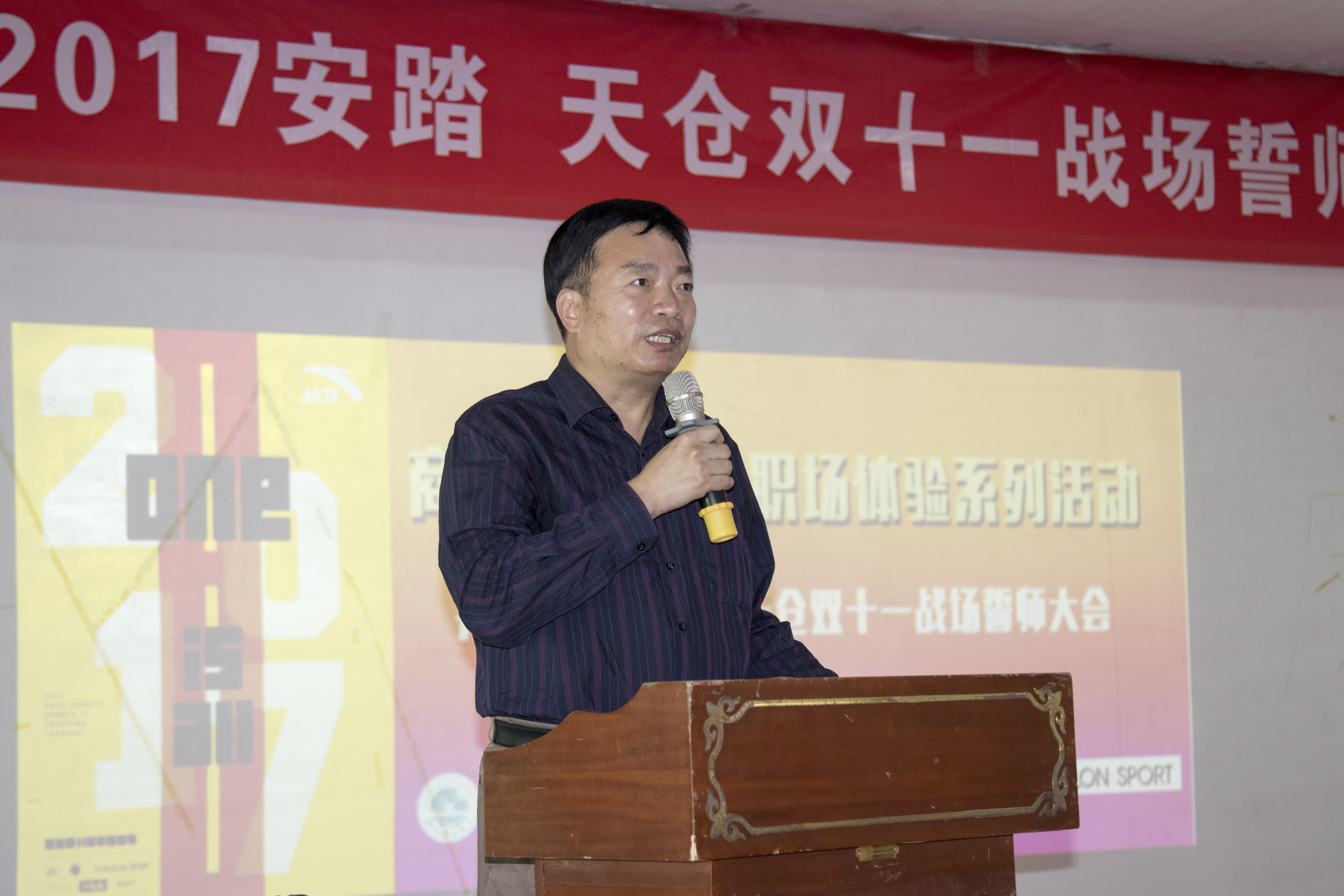 商学院吴剑峰副院长对2016年的双十一成果进行总结汇报,安踏电商客服部张远强先生的讲话让同学们有了更明确的目标,更有自信打赢双十一这场无硝烟的战役。